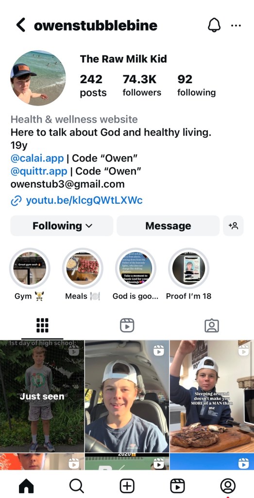 Known to some as The Raw Milk Kid on his social media, this teen models how consumption for clicks can pave the way for sponsorship and infamy.